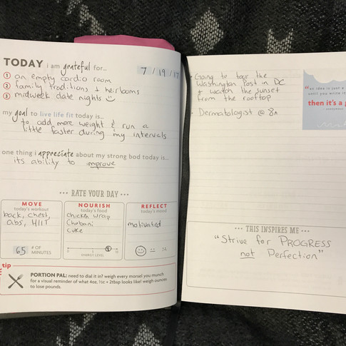 I took the pictures and put them side by side with ones I took on Day 6 of this program. There is slight visible progress. And that's enough to keep me motivated. I know the progress I want is feasible and will come. All I have to do is keep on top of my workout routine, stay true to my macros, eat as clean as I can, and stick to intermittent fasting. That may sound like a lot, but its not. Intermittent fasting was an easier transition for me than I thought it would be. I love snacking and used to think I HAD to eat first thing in the morning. Now, my first meal is around 11am everyday and my last is within the following 8-hour window. I'm never starving, I'm eating the same amount of nutrients, and my energy levels aren't suffering. Being able to do I.F. is progress in my book. It helps with my goal and I've been sticking to it. I shouldn't discount that. (Go me!) Working out 6 days a week sounds like a lot, but when I go into the gym in the morning, I see people that I know go in the evenings too. And I see them every time I go. If they can go twice a day, why wouldn't I be able to go once a day 6 days a week?